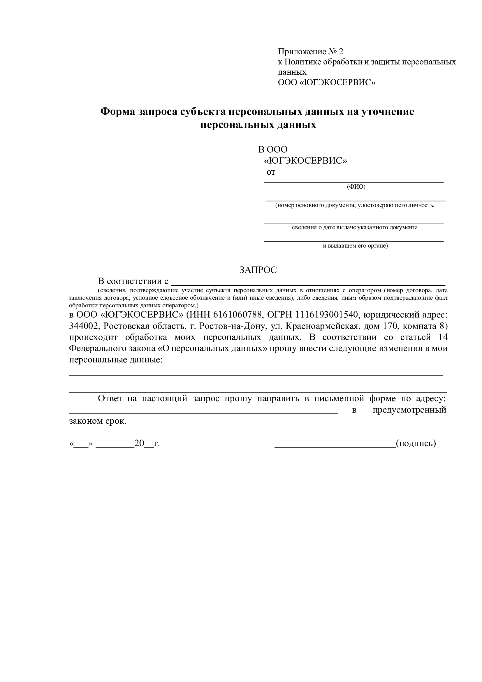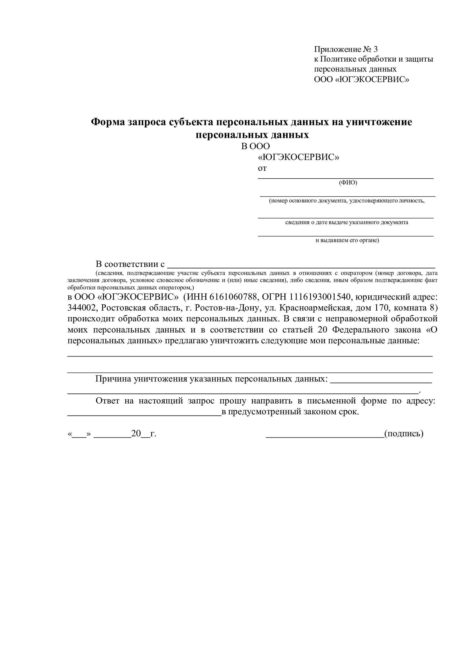 1.4.5. Субъект персональных данных имеет право обжаловать действия либо бездействие Общества, обратившись в уполномоченный орган по защите прав субъектов персональных данных (территориальное подразделение Роскомнадзора).